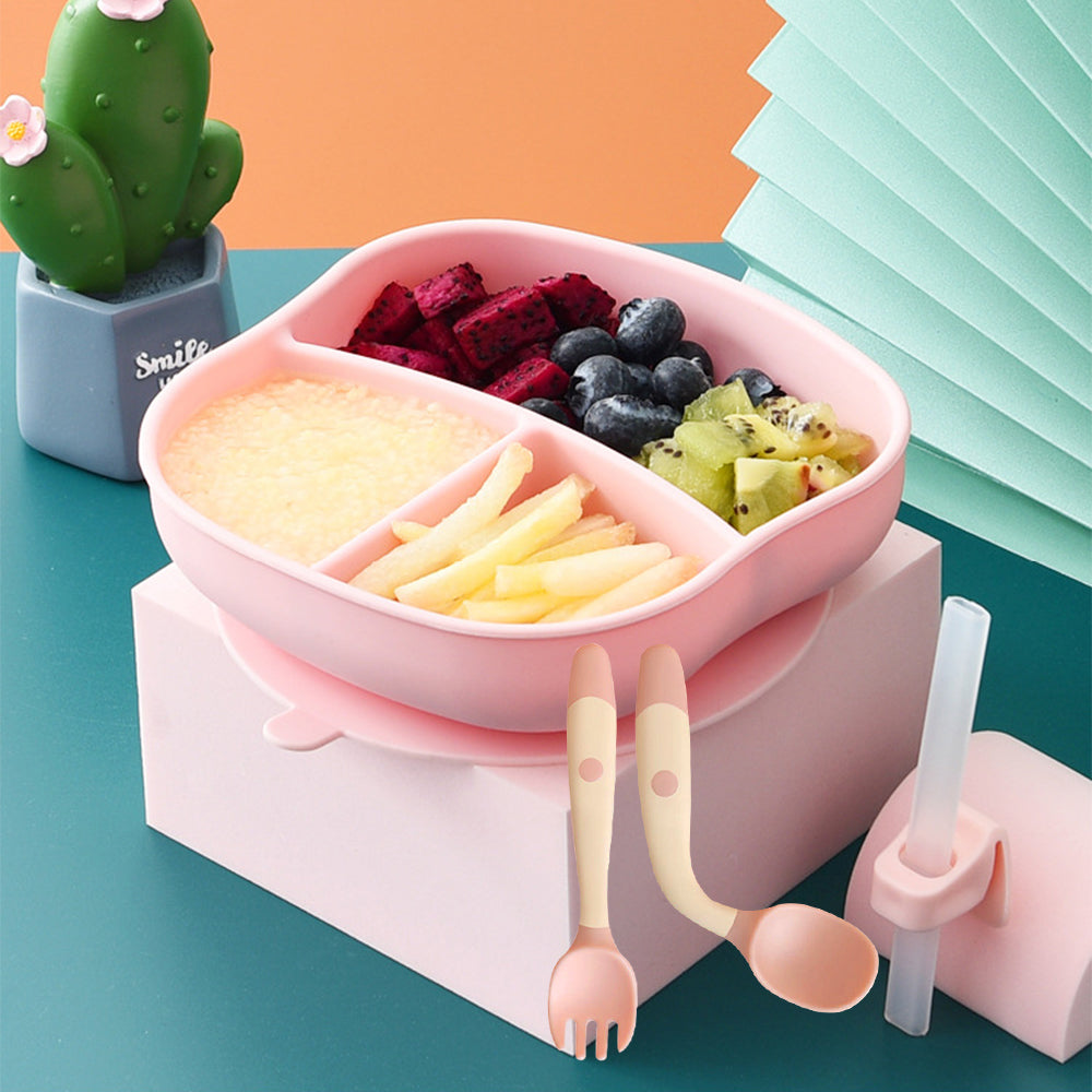 Big Sucker Children's Silicone Dinner Plate Integrated Food Supplement Partitioned
