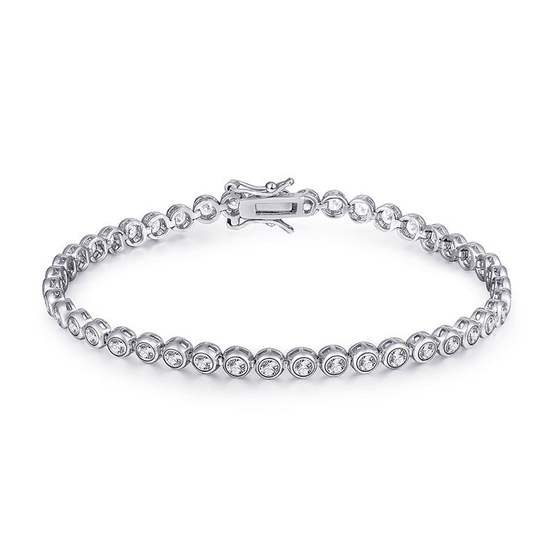 【PREMIUM QUALITY】Classic tennis bracelet features round 4mm AAA+ cubic zirconia.Under the Heart & Arrow cutting effect,every simulated diamond restores item... Read more