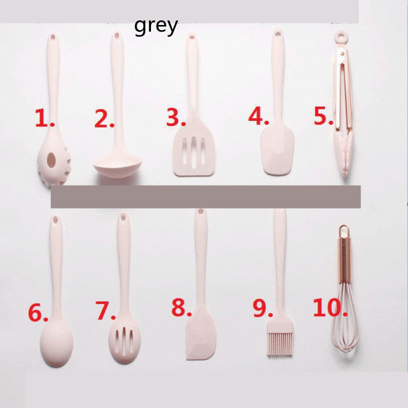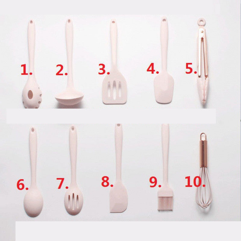 Product information:Product category: scoop kitMaterial: SiliconeSize: spatula, duck tongue spatula, drain spatula, rose gold egg whisk, rose gold food tongs,... Read more