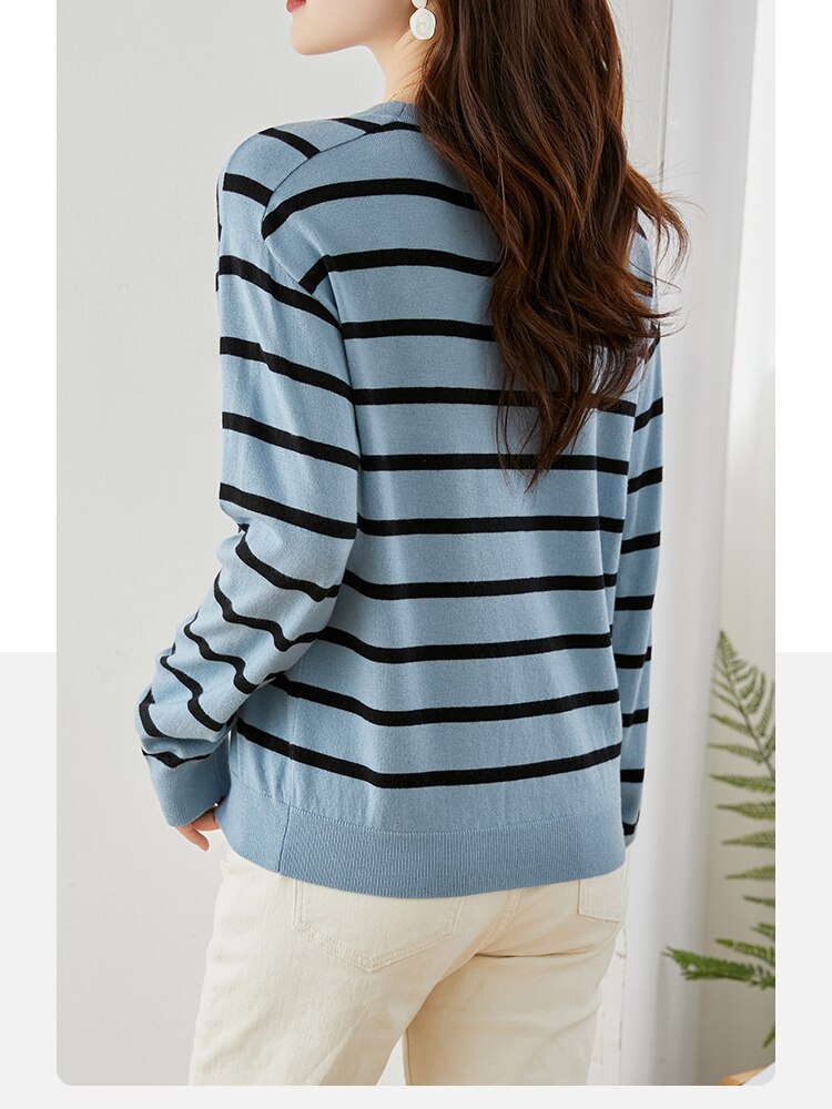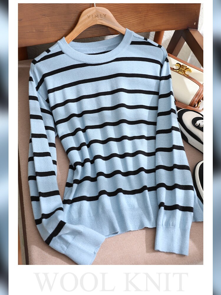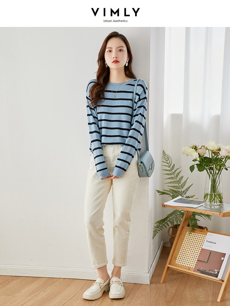 Vimly Blue Black Striped Sweater Women 2023 Spring Pullovers Knitwears